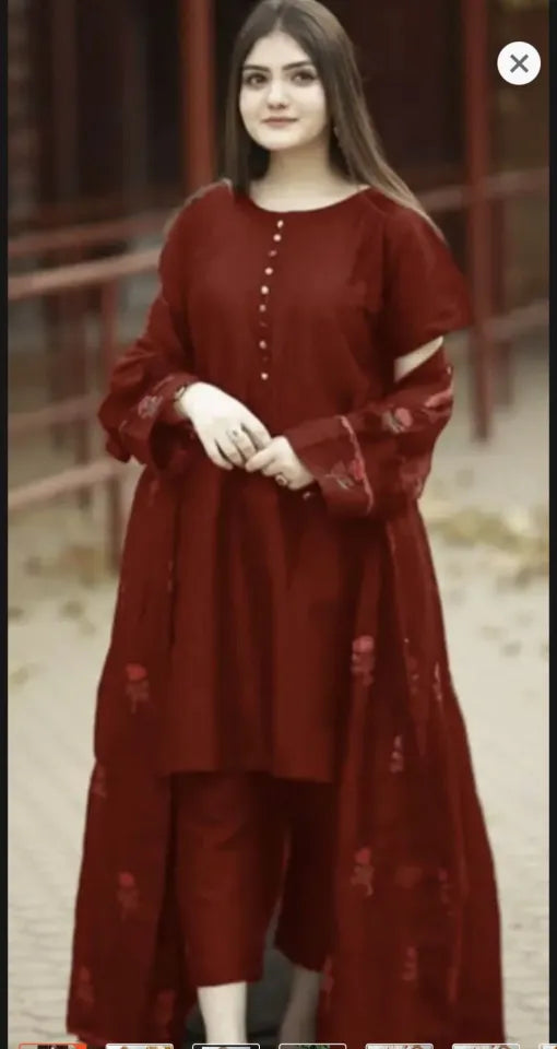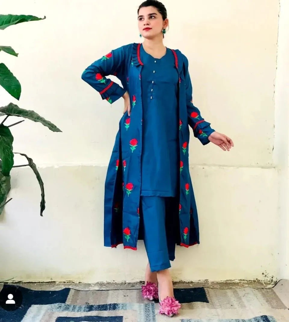 Stylish Stitched Embroidered Flower Gown 3-Piece Dress